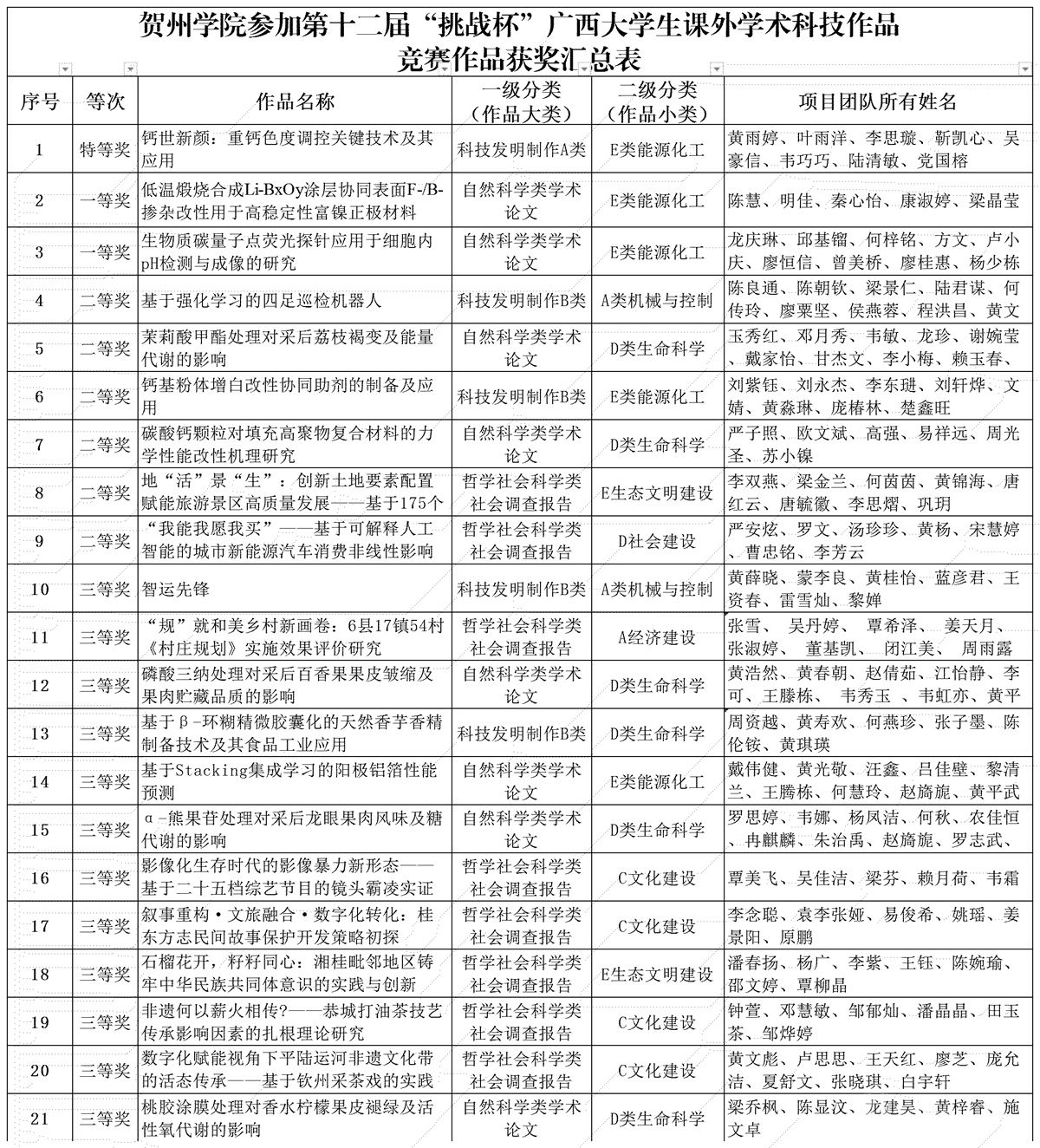图为获奖名单汇总表